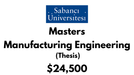 Master of Science - Manufacturing Engineering (Thesis) at Sabanci University: Tuition: $24,500 USD/Year (Scholarship Available)